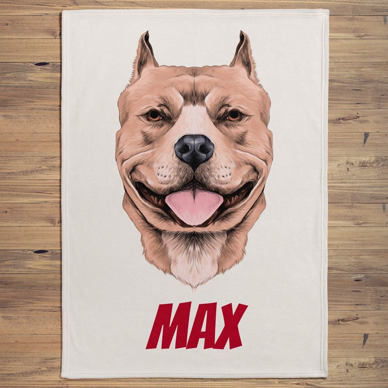 Супер меко светло бежово одеяло от полар, персонализирано с името на вашето куче в цвят по ваш избор. Той е с размери 140 см х 95 см.