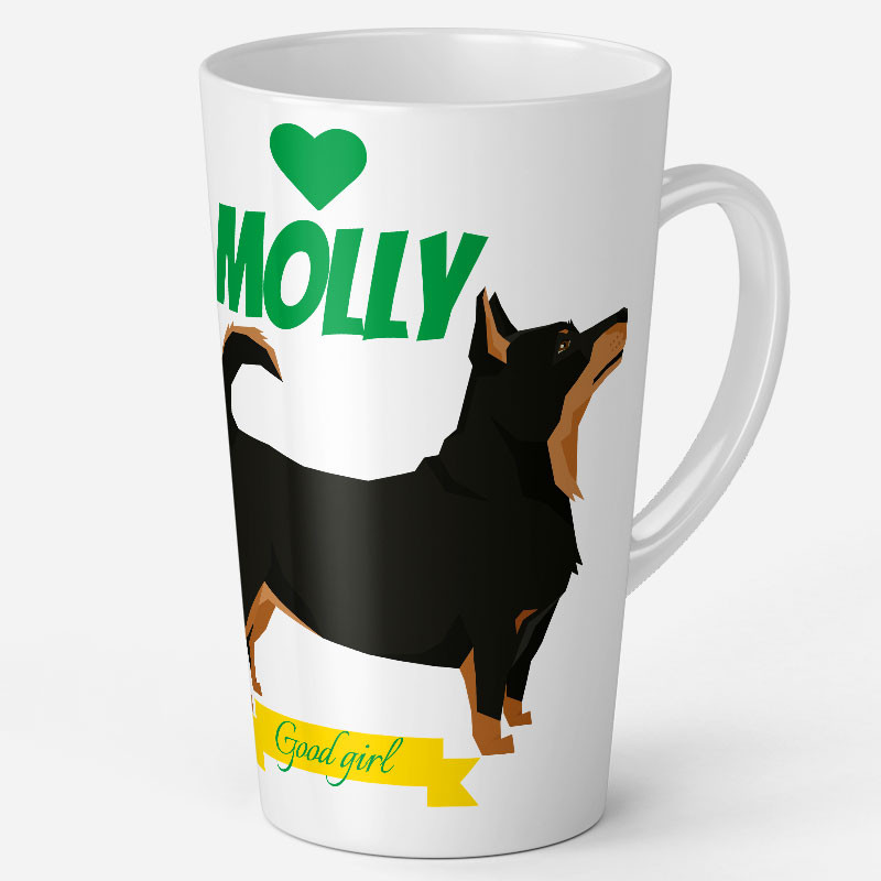 Tento Keramický Hrnek Drží Svůj Oblíbený Nápoj Kofeinu A Je Individuální Se Jménem Svého Psa A Krátký Slogan. Dáváme Možnost Výběru Styl Písma A Barvu Textu.