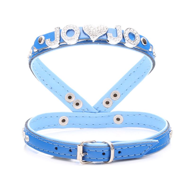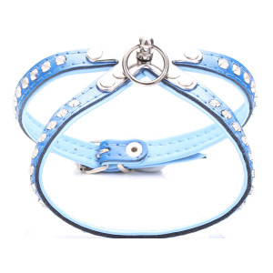 Malí psi budou milovat tuto pravá kůže psa postroj s měkkým polstrováním nebesky modrá. Je vyzdoben v zářících krystalů a má výhodnou Kovová otočná. Přední smyčka se pohodlně vejde kolem krku, zatímco nastavitelné zpět smyčky obepíná přední části hrudníku. Volitelné personalizace je k dispozici na písmeno půvaby.
