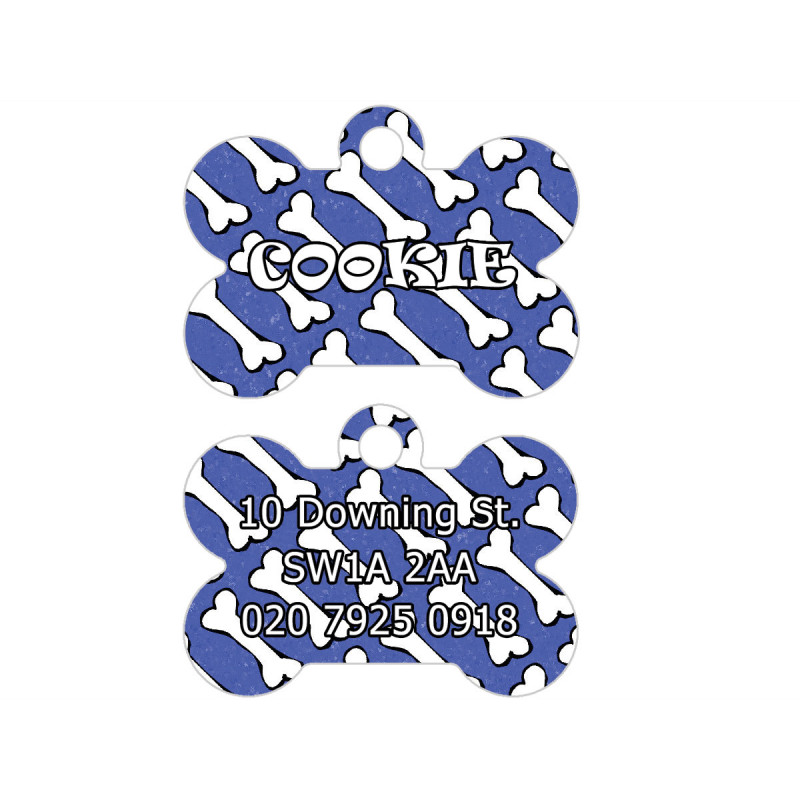 Unsere Hundemarken sind äußerst beliebt, weil sie farbenfroh und einzigartig sind und vollständig individuell gestaltet werden können. Durch den Druck auf Aluminium erhalten wir eine haltbare Oberfläche, die gut sichtbar ist. Was gibt es Besseres, um Ihren Hund sicher und stilvoll zu halten, als eine farbenfrohe, individuell gestaltete Hundemarke! Sie haben die Möglichkeit, jede Seite der Marke unabhängig voneinander zu personalisieren. Die meisten Kunden entscheiden sich dafür, die Vorderseite des Anhängers mit einem einzigen Namen bedrucken zu lassen und die Rückseite mit allen wichtigen Kontaktdaten zu versehen. Wir legen einen schweren Schlüsselring bei, den Sie an Ihrem bestehenden Halsband befestigen können. Er ist stark genug, um sicherzustellen, dass der Anhänger niemals herunterfällt.
