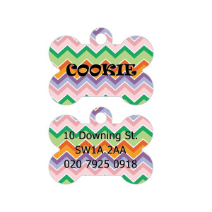 Unsere Hundemarken sind äußerst beliebt, weil sie farbenfroh und einzigartig sind und vollständig individuell gestaltet werden können. Durch den Druck auf Aluminium erhalten wir eine haltbare Oberfläche, die gut sichtbar ist. Was gibt es Besseres, um Ihren Hund sicher und stilvoll zu halten, als eine farbenfrohe, individuell gestaltete Hundemarke! Sie haben die Möglichkeit, jede Seite der Marke unabhängig voneinander zu personalisieren. Die meisten Kunden entscheiden sich dafür, die Vorderseite des Anhängers mit einem einzigen Namen bedrucken zu lassen und die Rückseite mit allen wichtigen Kontaktdaten zu versehen. Wir legen einen schweren Schlüsselring bei, den Sie an Ihrem bestehenden Halsband befestigen können. Er ist stark genug, um sicherzustellen, dass der Anhänger niemals herunterfällt.