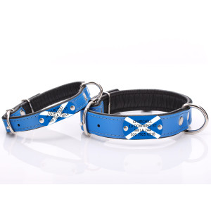 Echtes Leder-Hundehalsband Mit Schottischem Saltire-Flaggenschild