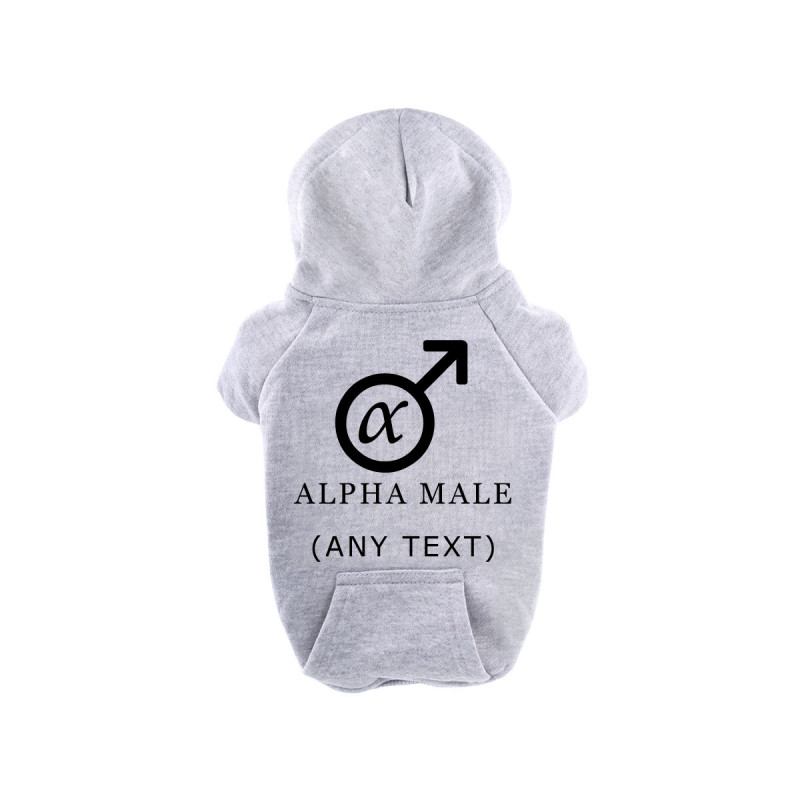 Graues Personalisiertes Hunde-Kapuzenpullover Mit Alpha-Männlichem Symbol