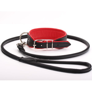 Handgefertigtes Hundehalsband & Blei Aus Schwarzem Und Rotem Leder