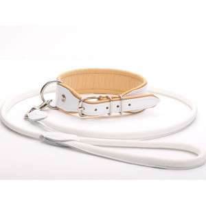 Handgefertigtes Hundehalsband & Blei-Set Aus Weißem Und Beigem Leder