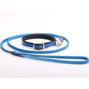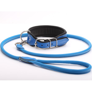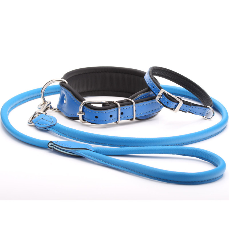 Handgemachtes Blaues Leder Hundehalsband & Blei Set