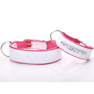 Handgemachtes Hundehalsband Aus Weißem Und Rosa Leder