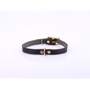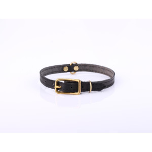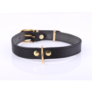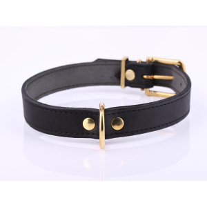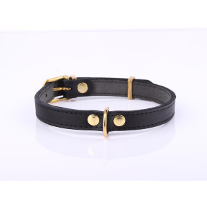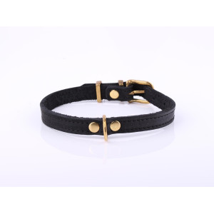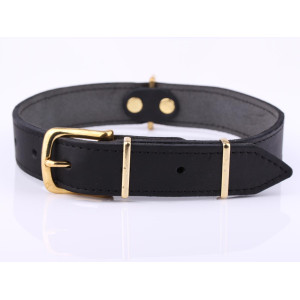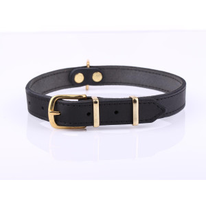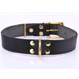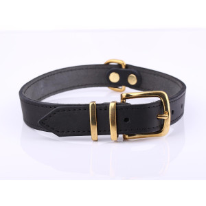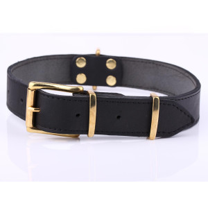 Hundehalsband Aus Schwarzem, Geöltem Leder - Messingbeschläge