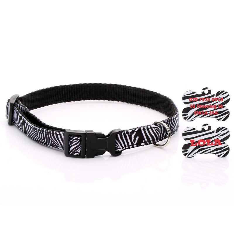 Hundehalsband Mit Zebramuster Und Passendem Etikett