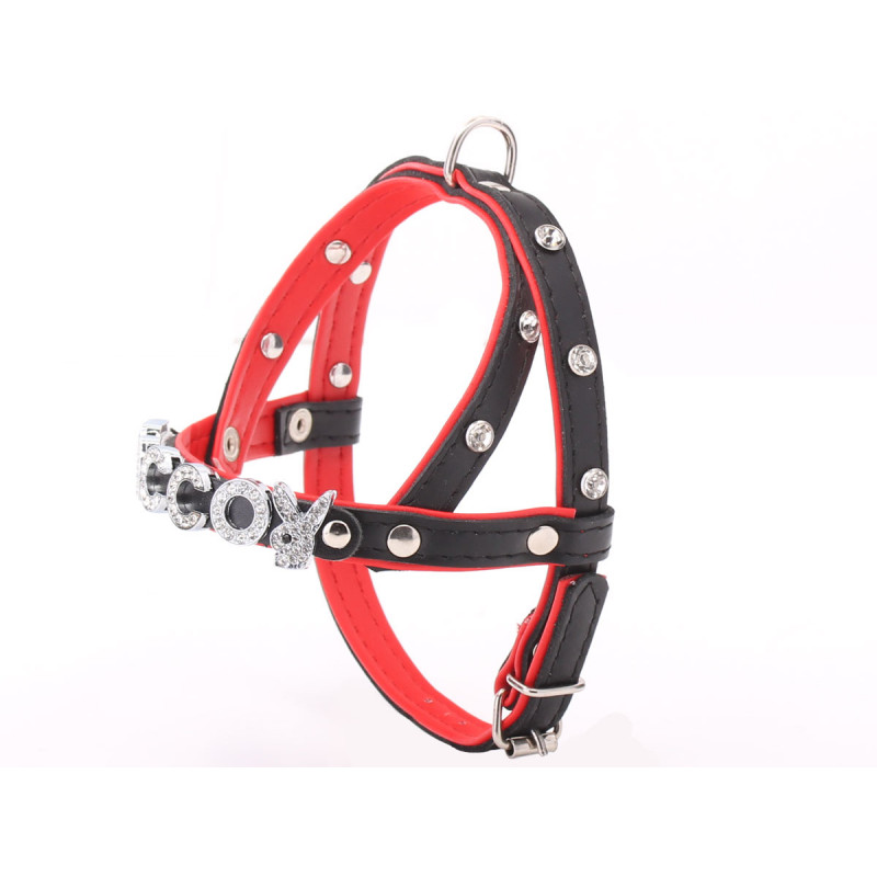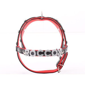 Kristallisiertes Hundegeschirr Aus Schwarzem Und Rotem Leder