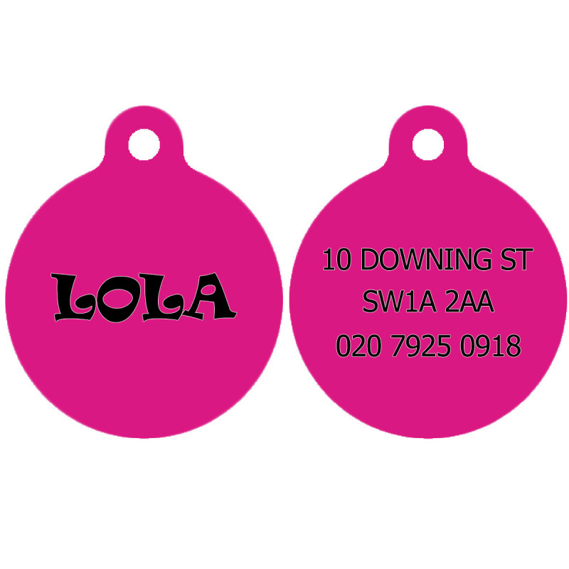 Unsere Hundemarken sind äußerst beliebt, weil sie farbenfroh und einzigartig sind und vollständig individuell gestaltet werden können. Durch den Druck auf Aluminium erhalten wir eine haltbare Oberfläche, die gut sichtbar ist. Was gibt es Besseres, um Ihren Hund sicher und stilvoll zu halten, als eine farbenfrohe, individuell gestaltete Hundemarke! Sie haben die Möglichkeit, jede Seite der Marke unabhängig voneinander zu personalisieren. Die meisten Kunden entscheiden sich dafür, die Vorderseite des Anhängers mit einem einzigen Namen bedrucken zu lassen und die Rückseite mit allen wichtigen Kontaktdaten zu versehen. Wir legen einen schweren Schlüsselring bei, den Sie an Ihrem bestehenden Halsband befestigen können. Er ist stark genug, um sicherzustellen, dass der Anhänger niemals herunterfällt.