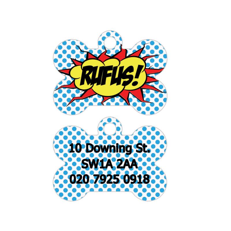 Unsere Hundemarken sind äußerst beliebt, weil sie farbenfroh und einzigartig sind und vollständig individuell gestaltet werden können. Durch den Druck auf Aluminium erhalten wir eine haltbare Oberfläche, die gut sichtbar ist. Was gibt es Besseres, um Ihren Hund sicher und stilvoll zu halten, als eine farbenfrohe, individuell gestaltete Hundemarke! Sie haben die Möglichkeit, jede Seite der Marke unabhängig voneinander zu personalisieren. Die meisten Kunden entscheiden sich dafür, die Vorderseite des Anhängers mit einem einzigen Namen bedrucken zu lassen und die Rückseite mit allen wichtigen Kontaktdaten zu versehen. Wir legen einen schweren Schlüsselring bei, den Sie an Ihrem bestehenden Halsband befestigen können. Er ist stark genug, um sicherzustellen, dass der Anhänger niemals herunterfällt.