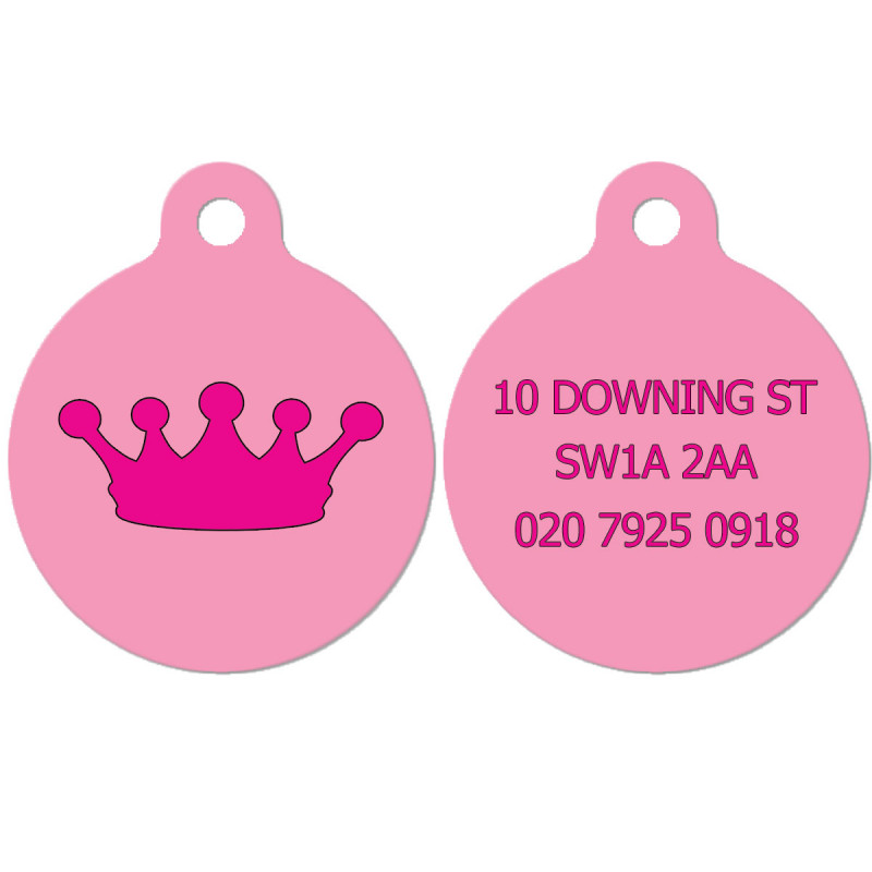 Unsere Hundemarken sind äußerst beliebt, weil sie farbenfroh und einzigartig sind und vollständig individuell gestaltet werden können. Durch den Druck auf Aluminium erhalten wir eine haltbare Oberfläche, die gut sichtbar ist. Was gibt es Besseres, um Ihren Hund sicher und stilvoll zu halten, als eine farbenfrohe, individuell gestaltete Hundemarke! Sie haben die Möglichkeit, jede Seite der Marke unabhängig voneinander zu personalisieren. Die meisten Kunden entscheiden sich dafür, die Vorderseite des Anhängers mit einem einzigen Namen bedrucken zu lassen und die Rückseite mit allen wichtigen Kontaktdaten zu versehen. Wir legen einen schweren Schlüsselring bei, den Sie an Ihrem bestehenden Halsband befestigen können. Er ist stark genug, um sicherzustellen, dass der Anhänger niemals herunterfällt.