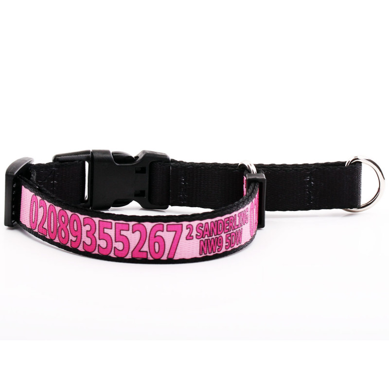 Unsere erstklassigen verstellbaren Hundehalsbänder sind von hoher Qualität und werden mit Ihrem Telefon und Ihrer Adresse oder einem von Ihnen gewählten Text personalisiert. Durch den Einsatz der neuesten und besten Drucktechnologie sind wir in der Lage, Ihnen eine qualitativ hochwertige Kennzeichnung für Ihren Hund zu liefern, die leicht zu lesen und extrem haltbar ist und der Hundekontrollverordnung von 1992 entspricht. Unabhängig von der Abnutzung wird der Druck nicht abgerieben oder verblassen. Das Halsband ist so konzipiert, dass es effizient und extrem sicher ist. Im Gegensatz zu kleineren Designs, die eine Würgekette verwenden, die Ihrem geliebten Haustier Verletzungen zufügen kann, ist unser Design besonders sicher, da keine Ketten verwendet werden. Unsere Konstruktion ist bei Hundetrainern wegen ihrer Haltbarkeit, Wirksamkeit beim Training und Sicherheit beliebt. Das Halsband besteht aus strapazierfähigem Polyester und ist für Sicherheit und Bequemlichkeit mit einer starken, schnell lösbaren Schnalle versehen.