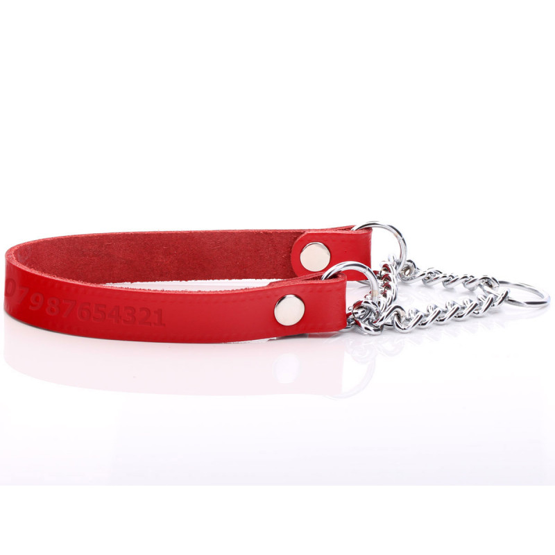 Um Ihrem Hund zusätzliche Kontrolle zu geben und gleichzeitig die Sicherheit zu gewährleisten, besteht ein Martingal-Halsband aus zwei Schlaufen - eine, die um den Hals passt, und eine, die das Halsband enger macht. Der Hauptvorteil dieses Halsbandes, das auch als halbes Würgehalsband bezeichnet wird, besteht darin, dass es das richtige Maß an Spannung gibt, ohne Ihren Hund zu ersticken. Wir bieten die Möglichkeit, dieses Halsband mit einer Prägung zu personalisieren. Es wird empfohlen, die Prägung so kurz wie möglich zu halten. Sie könnten zum Beispiel Ihre Telefonnummer, Postleitzahl und Hausnummer eingeben. Züchter und Ausbilder empfehlen Martingal-Halsbänder aus den oben genannten Gründen sehr. Windhundbesitzer vertrauen seit Jahren auf dieses Design, weil es verhindert, dass die Köpfe des Hundes beim Hüpfen herausrutschen. Es ist wichtig, dieses Halsband zu entfernen, wenn Sie vorhaben, Ihren Hund frei laufen zu lassen. Es könnte beim Laufen durch bewachsene Gebiete stecken bleiben.