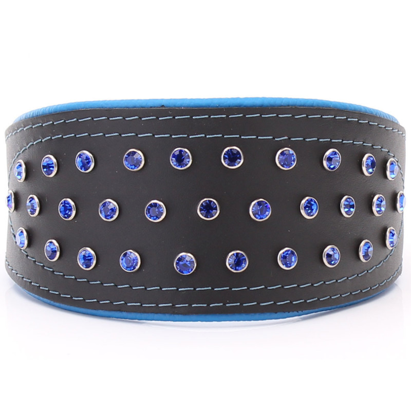 Dieses luxuriöse Hundehalsband ist mit Swarovski-Kristallen verziert und wurde für den Komfort entworfen. Der schmale Verschluss passt leicht unter das Kinn und das Halsband verbreitert sich im Nacken, um ohne Scheuern zu sitzen. Die weiche Lederrückenpolsterung bedeutet, dass keine Kragenlinien in das Fell geschnitzt sind, und die Vorderseite aus echtem Leder ist sowohl haltbar als auch stilvoll.
