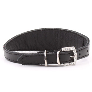 Dieses luxuriöse Halsband ist mit Swarovski-Kristallen verziert und hat eine Schnalle, die ebenfalls mit glänzenden Kristallen verziert ist. Die Leine ist aus echtem Leder mit einer weichen, vollnarbigen Lederunterlage hergestellt, sie ist leicht und superbequem für Ihren Welpen. Der schmale Verschluss passt leicht unter das Kinn, und das Halsband wird am Nacken leicht verbreitert, damit es sitzen kann, ohne zu scheuern.