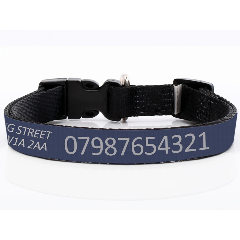 Verstellbares Dunkelblaues Hundehalsband Mit Aufdruck