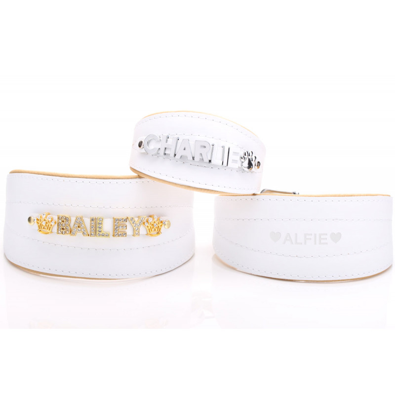 Sie und Ihr Windhund werden dieses personalisierte Hundehalsband lieben, weil es mehr individuelle Optionen bietet als jedes andere auf dem Markt. Personalisieren Sie es mit einem von vier Arten von Anhängern oder einer traditionellen Prägung. Ihre Personalisierung kann Pfoten, Kronen, Herzen und mehr umfassen. Speziell für den Komfort Ihres Windhundes entworfen. Der schmale Verschluss passt leicht unter das Kinn, und der Kragen verbreitert sich im Nacken, so dass er sitzt, ohne zu scheuern. Dieses Design ist hilfreich, um zu verhindern, dass Ihr Hund aus dem Halsband rutscht, falls ein Kaninchen es wagt, Ihren Weg zu kreuzen. Das weiche, hypoallergene, gepolsterte Innenfutter bedeutet, dass keine Kragenlinien in ihr Fell geschnitzt sind, und die Vorderseite aus echtem Leder ist sowohl haltbar als auch stilvoll. Wir bieten eine Vielzahl von Farbkombinationen von Vorderleder und gepolstertem Innenfutter an, damit sich Ihr Hund wohl und stilvoll fühlt. Der geschweißte D-Ring ist sehr stabil und nimmt alle gängigen Hundeleinen auf. Die haltbare Chromschnalle hält den Riemen fest und sichert jeden Hund ein Leben lang.