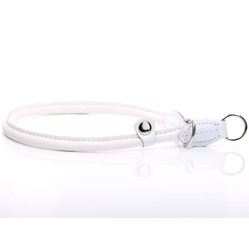 Schlupfhalsbänder sind wunderbare Trainingshilfen für Hunde, die Probleme mit dem Ziehen haben oder ein wenig Training benötigen, um an der Leine richtig gehen zu können. Unsere runden Schlupfhalsbänder sind aus weichem Leder gefertigt und mit einem verstellbaren Sicherheitsblocker versehen. Ein Nylonseilkern wird hinzugefügt, um die runde Form beizubehalten und die Haltbarkeit zu erhöhen und gleichzeitig das Halsband leicht zu halten. Das runde Design eignet sich auch gut für Welpen mit langem oder struppigem Haar, da es ein Verfilzen des Fells verhindert. Wenn Sie Ihren Hund trainieren, empfehlen wir Ihnen, die Leine seitlich und nicht gerade nach hinten zu ziehen. Dies bringt Ihren Hund aus dem Gleichgewicht und erinnert ihn daran, wer die Kontrolle hat. Stellen Sie den Sicherheitsblocker so ein, dass sich das Halsband nicht zu stark anzieht.