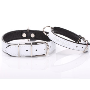 Dies ist ein wunderbares Hundehalsband aus Leder aufgrund der robusten Konstruktion, des einfachen, zeitlosen Designs und des Farbpalastes. Die weiche Polsterschicht zwischen dem Lederriemen und dem Hals sorgt dafür, dass Ihr Hund auch nach mehreren Pfeilversuchen nach eindringenden Eichhörnchen nicht über ein Scheuern des Halsbandes klagen wird. Der geschweißte D-Ring ist sehr stark und nimmt alle gängigen Hundeleinen auf. Die haltbare Chromschnalle hält den Riemen fest und sichert jeden Hund ein Leben lang. Kein Hund gleicht dem anderen, deshalb bieten wir dieses Sortiment an Halsbändern in 11 Größenvarianten an. Sie werden sicher ein Halsband finden, das in Halsgröße und -breite passend ist. Schauen Sie sich unbedingt unsere Größentabelle für alle Details an. Als Personalisierung bieten wir optional eine Prägung an. Sie können das Halsband mit Ihrer Telefonnummer oder dem Namen Ihres Hundes personalisieren.