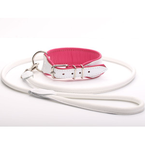 Χειροποίητο Λευκό Και Ροζ Δερμάτινο Κολάρο Σκύλου Και Μολύβδου Σύνολο
