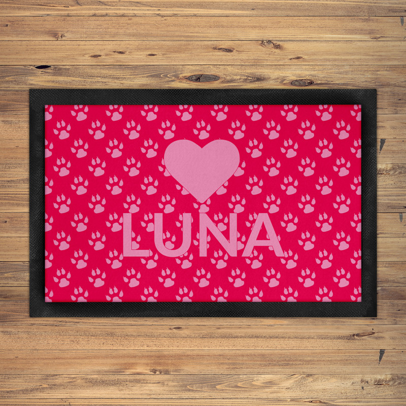 Alfombrilla Para Cuenco Para Perro Con Estampado De Patas Rosa