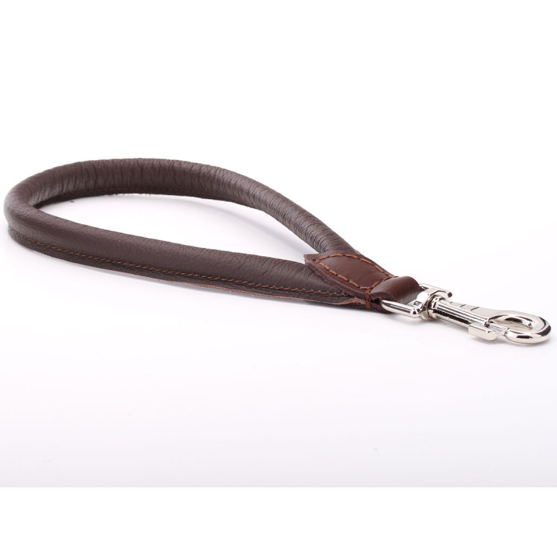 Esta manija de tráfico corta de cuero enrollado es para propietarios que necesitan un control adicional. La empuñadura de cuero suave es agradable para las manos. Un núcleo de nailon adicional y accesorios de metal cromado garantizan la durabilidad.