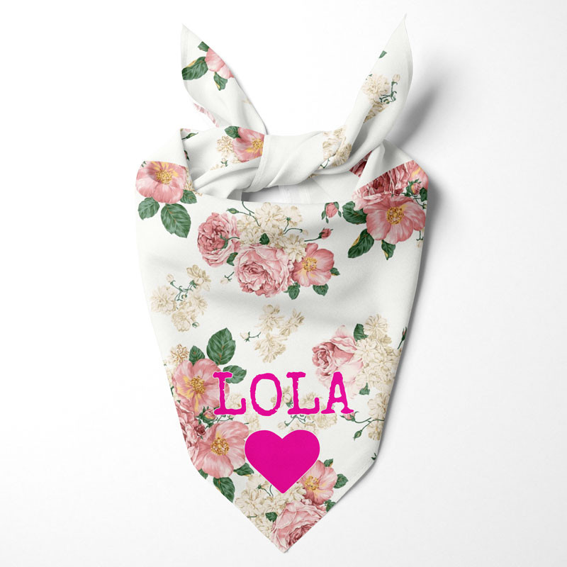 Intentamos almacenar un diseño de bandana para perros para cada ocasión. Están construidos para atarse alrededor del cuello o para deslizarse cómodamente en cualquier collar de perro estándar a través de un dobladillo en la parte superior. Utilizamos maquinaria de última generación para imprimir de forma permanente en las fibras de la tela, lo que proporciona una impresión con un acabado maravillosamente suave. Usamos una mezcla rígida de algodón y poliéster que mantiene su forma triangular para mostrar maravillosamente el gráfico y su personalización. No hay límite en la cantidad de texto que podemos agregar a su bandana y también podemos agregar símbolos especiales como una pata, corona, hueso, corazón, calavera, fútbol o estrella. Aunque haremos todo lo posible para imprimir personalizaciones largas, recomendamos que sea breve para que podamos utilizar un tamaño de fuente razonable. Nuestro proceso de personalización es permanente lo que permite que la bandana sea lavable a máquina. Solo tírelo con el resto del lavado, use un detergente suave y ajuste de baja temperatura. Disponemos de tamaños para todas las razas de perros; el tamaño está disponible desde XS hasta XL. Si elige el diseño de corbata, seleccione un tamaño que deje al menos 20 cm u 8 pulgadas para atar.