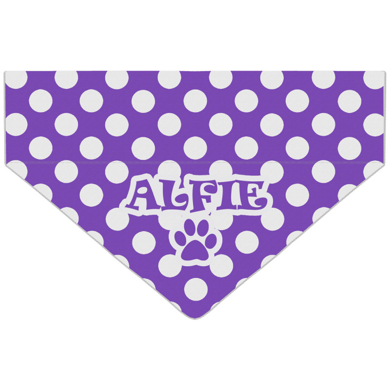 Intentamos almacenar un diseño de bandana para perros para cada ocasión. Están construidos para atarse alrededor del cuello o para deslizarse cómodamente en cualquier collar de perro estándar a través de un dobladillo en la parte superior. Utilizamos maquinaria de última generación para imprimir de forma permanente en las fibras de la tela, lo que proporciona una impresión con un acabado maravillosamente suave. Usamos una mezcla rígida de algodón y poliéster que mantiene su forma triangular para mostrar maravillosamente el gráfico y su personalización. No hay límite en la cantidad de texto que podemos agregar a su bandana y también podemos agregar símbolos especiales como una pata, corona, hueso, corazón, calavera, fútbol o estrella. Aunque haremos todo lo posible para imprimir personalizaciones largas, recomendamos que sea breve para que podamos utilizar un tamaño de fuente razonable. Nuestro proceso de personalización es permanente lo que permite que la bandana sea lavable a máquina. Solo tírelo con el resto del lavado, use un detergente suave y ajuste de baja temperatura. Disponemos de tamaños para todas las razas de perros; el tamaño está disponible desde XS hasta XL. Si elige el diseño de corbata, seleccione un tamaño que deje al menos 20 cm u 8 pulgadas para atar.