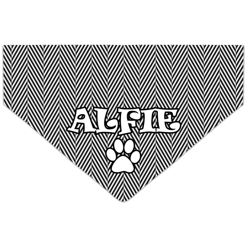 Intentamos almacenar un diseño de bandana para perros para cada ocasión. Están construidos para atarse alrededor del cuello o para deslizarse cómodamente en cualquier collar de perro estándar a través de un dobladillo en la parte superior. Utilizamos maquinaria de última generación para imprimir de forma permanente en las fibras de la tela, lo que proporciona una impresión con un acabado maravillosamente suave. Usamos una mezcla rígida de algodón y poliéster que mantiene su forma triangular para mostrar maravillosamente el gráfico y su personalización. No hay límite en la cantidad de texto que podemos agregar a su bandana y también podemos agregar símbolos especiales como una pata, corona, hueso, corazón, calavera, fútbol o estrella. Aunque haremos todo lo posible para imprimir personalizaciones largas, recomendamos que sea breve para que podamos utilizar un tamaño de fuente razonable. Nuestro proceso de personalización es permanente lo que permite que la bandana sea lavable a máquina. Solo tírelo con el resto del lavado, use un detergente suave y ajuste de baja temperatura. Disponemos de tamaños para todas las razas de perros; el tamaño está disponible desde XS hasta XL. Si elige el diseño de corbata, seleccione un tamaño que deje al menos 20 cm u 8 pulgadas para atar.