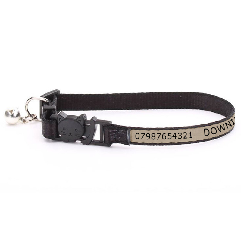 Nuestros collares ajustables para gatos de primera clase son de alta calidad y están personalizados con su teléfono y dirección o cualquier mensaje de texto que elija. Utilizando la última y mejor tecnología de impresión, podemos ofrecerle una identificación de alta calidad para su gato que sea fácil de leer y extremadamente duradera. No importa el desgaste, la impresión no se borrará ni se desvanecerá.