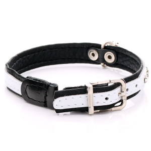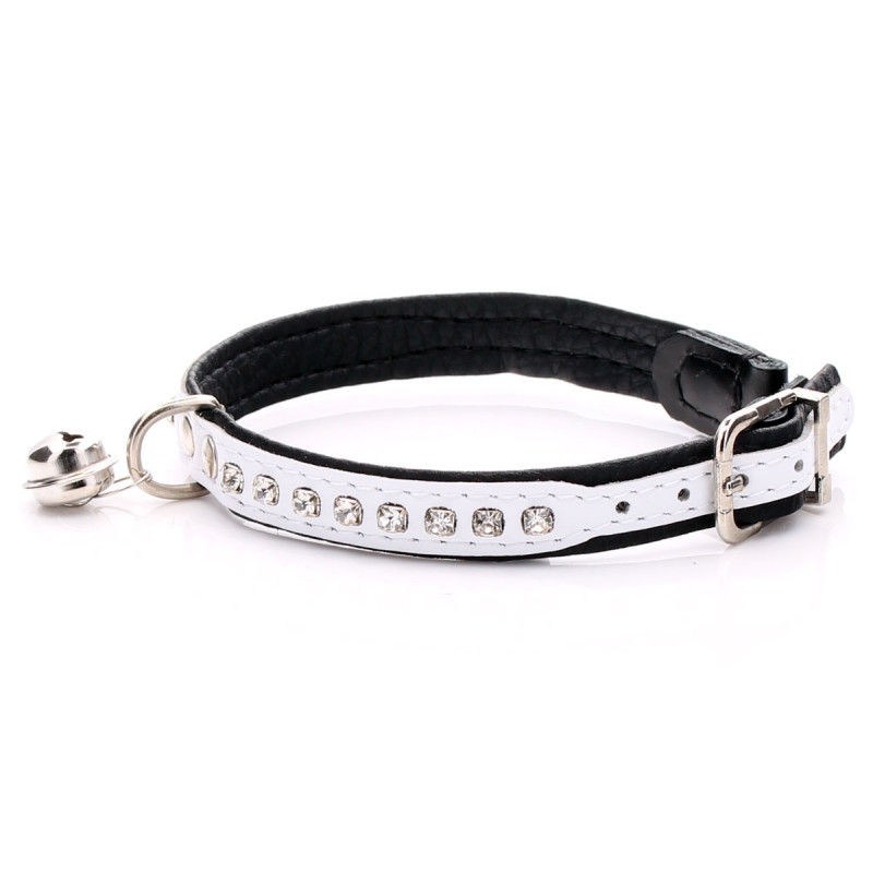 Este collar de gato de cuero con tachuelas de cristal satisfará incluso al gato más esnob. Está acolchado con forro de piel suave para mayor comodidad. Cosimos una banda elástica entre la hebilla y la correa, lo que permite que su gato escape de quedar atrapado en un arbusto. También se agrega una campana de plata para proteger la vida silvestre de su pequeño ápice depredador.