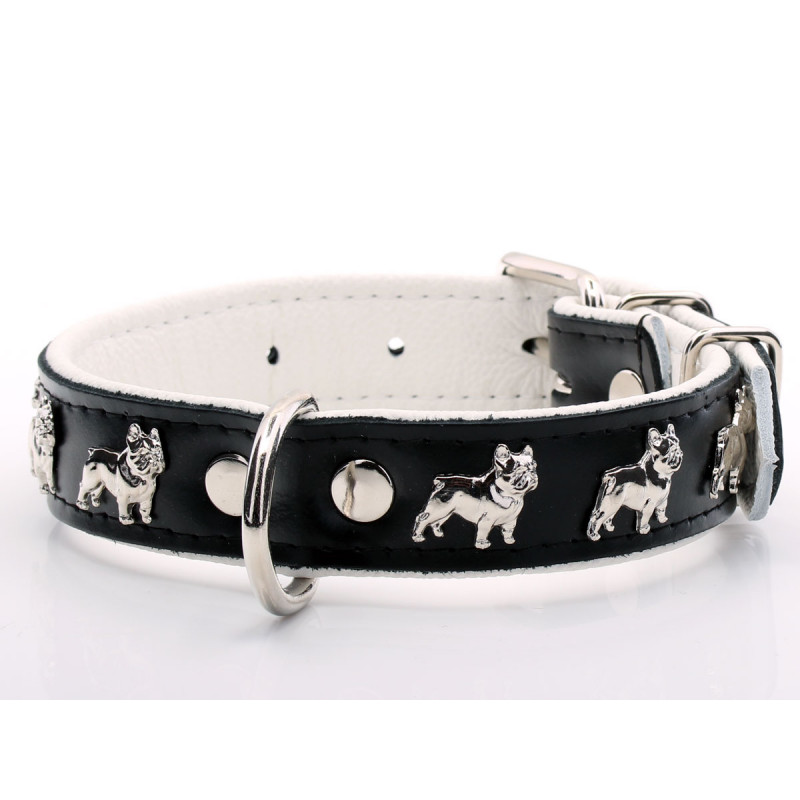 Los Bulldogs franceses no solo son excelentes compañeros, sino que también son fabulosos perros de exhibición. Este collar es perfecto para su pequeña superestrella porque está diseñado para ser elegante y ultra cómodo. El acolchado de cuero suave garantiza que su mejor amigo no se frote ni le queden marcas en el cuello. También ofrecemos guías a juego y una gran variedad de placas de identificación personalizadas y coloridas.