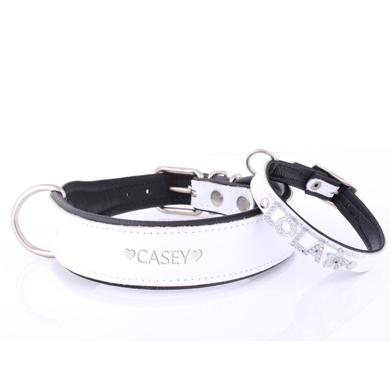 A usted y a su perro les encantará este collar para perros personalizado porque tiene más opciones personalizadas que cualquier otro collar del mercado. Se puede personalizar con 4 tipos de dijes diferentes o con estampado tradicional. Su personalización puede incluir patas, coronas, corazones y más. ¡Seguro que encontrarás el ajuste perfecto porque disponemos de 9 tallas! Su taza de té Chihuahua y gran danés finalmente pueden tener collares a juego. Diga adiós al frotamiento incómodo porque nuestros collares tienen una capa acolchada suave que se coloca entre la correa de cuero y el cuello de su cachorro. Las correas de cuero y las capas acolchadas están diseñadas en diferentes combinaciones de colores para hacer que nuestros cuellos sean posiblemente los más de moda en la red. ¡En total, tenemos 18 combinaciones de colores diferentes para elegir! Un anillo en D soldado, un forro acolchado suave con hebilla de metal resistente, hace que estos collares sean más que un simple accesorio de moda. Los paseos por el parque serán un placer y seguramente su perro recibirá más que unas miradas envidiosas de otros perros en el parque.
