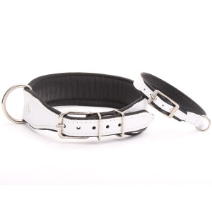 Collar De Perro De Cuero Blanco Hecho A Mano