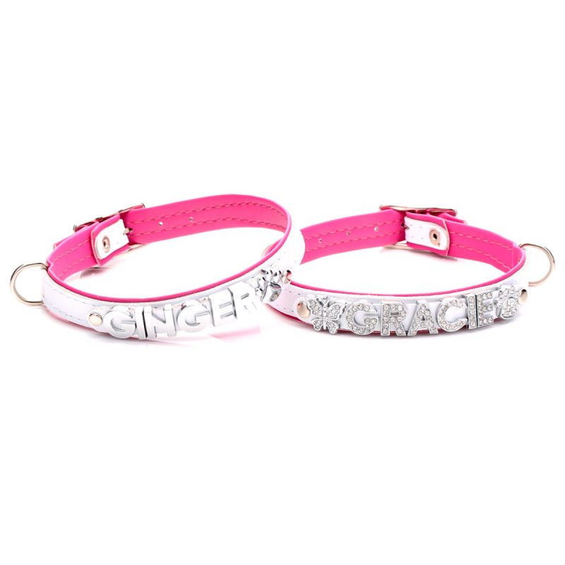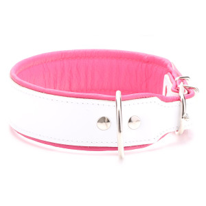 Collar De Perro De Cuero Blanco Y Rosa Hecho A Mano