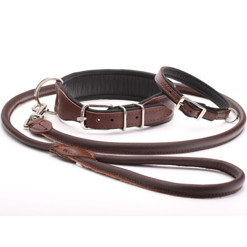 Collar De Perro De Cuero Marrón Hecho A Mano Y Juego De Correa