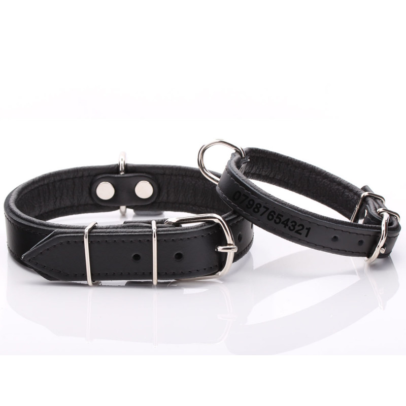 Este es un maravilloso collar de cuero para perros debido a la construcción robusta, el diseño simple y atemporal y la paleta de colores. La capa acolchada suave entre la correa de cuero y el cuello asegura que su perro no se queje del roce del collar incluso después de varios intentos de lanzarse después de invadir ardillas. El anillo en D soldado es muy fuerte y se adapta a todas las correas para perros estándar. La hebilla cromada duradera sujeta la correa firmemente y asegurará a cualquier perro durante toda su vida. No hay dos perros iguales, por lo que ofrecemos esta gama de collares en 11 variaciones de tamaño. Seguro que encontrará un collar que sea adecuado para el tamaño y el ancho del cuello. Asegúrese de consultar nuestra tabla de tallas para conocer todos los detalles. Ofrecemos grabado opcional como personalización. Puede personalizar el collar con su número de teléfono o el nombre de su perro.
