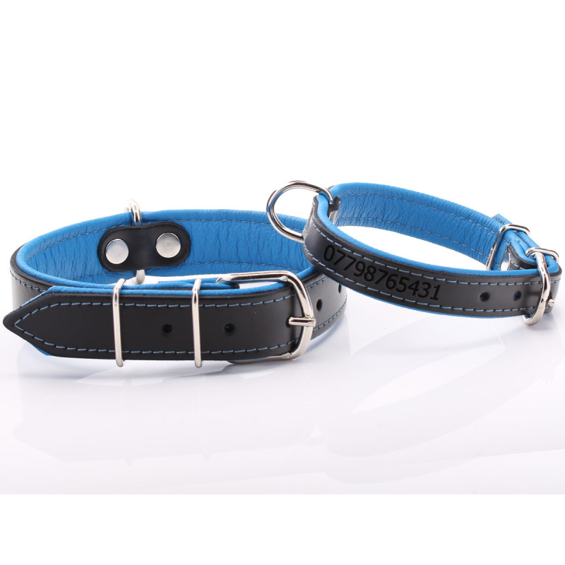 Este es un maravilloso collar de cuero para perros debido a la construcción robusta, el diseño simple y atemporal y la paleta de colores. La capa acolchada suave entre la correa de cuero y el cuello asegura que su perro no se queje del roce del collar incluso después de varios intentos de lanzarse después de invadir ardillas. El anillo en D soldado es muy fuerte y se adapta a todas las correas para perros estándar. La hebilla cromada duradera sujeta la correa firmemente y asegurará a cualquier perro durante toda su vida. No hay dos perros iguales, por lo que ofrecemos esta gama de collares en 11 variaciones de tamaño. Seguro que encontrará un collar que sea adecuado para el tamaño y el ancho del cuello. Asegúrese de consultar nuestra tabla de tallas para conocer todos los detalles. Ofrecemos grabado opcional como personalización. Puede personalizar el collar con su número de teléfono o el nombre de su perro.