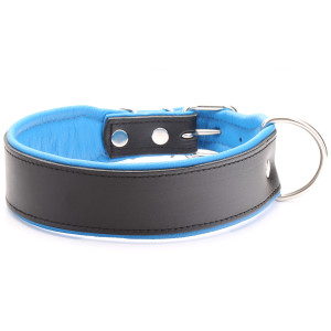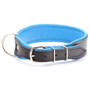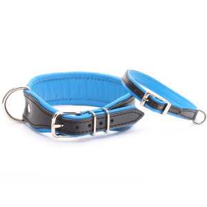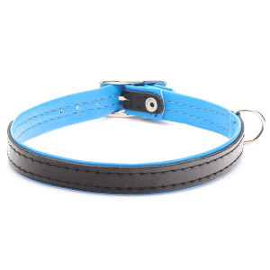 Collar De Perro De Cuero Negro Y Azul Hecho A Mano