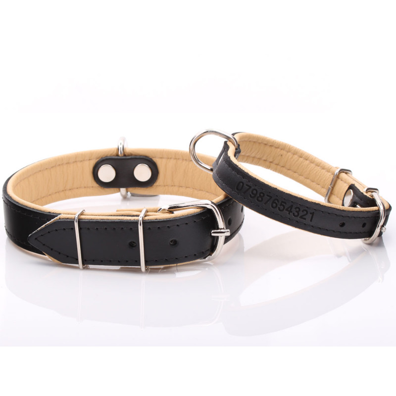 Este es un maravilloso collar de cuero para perros debido a la construcción robusta, el diseño simple y atemporal y la paleta de colores. La capa acolchada suave entre la correa de cuero y el cuello asegura que su perro no se queje del roce del collar incluso después de varios intentos de lanzarse después de invadir ardillas. El anillo en D soldado es muy fuerte y se adapta a todas las correas para perros estándar. La hebilla cromada duradera sujeta la correa firmemente y asegurará a cualquier perro durante toda su vida. No hay dos perros iguales, por lo que ofrecemos esta gama de collares en 11 variaciones de tamaño. Seguro que encontrará un collar que sea adecuado para el tamaño y el ancho del cuello. Asegúrese de consultar nuestra tabla de tallas para conocer todos los detalles. Ofrecemos grabado opcional como personalización. Puede personalizar el collar con su número de teléfono o el nombre de su perro.