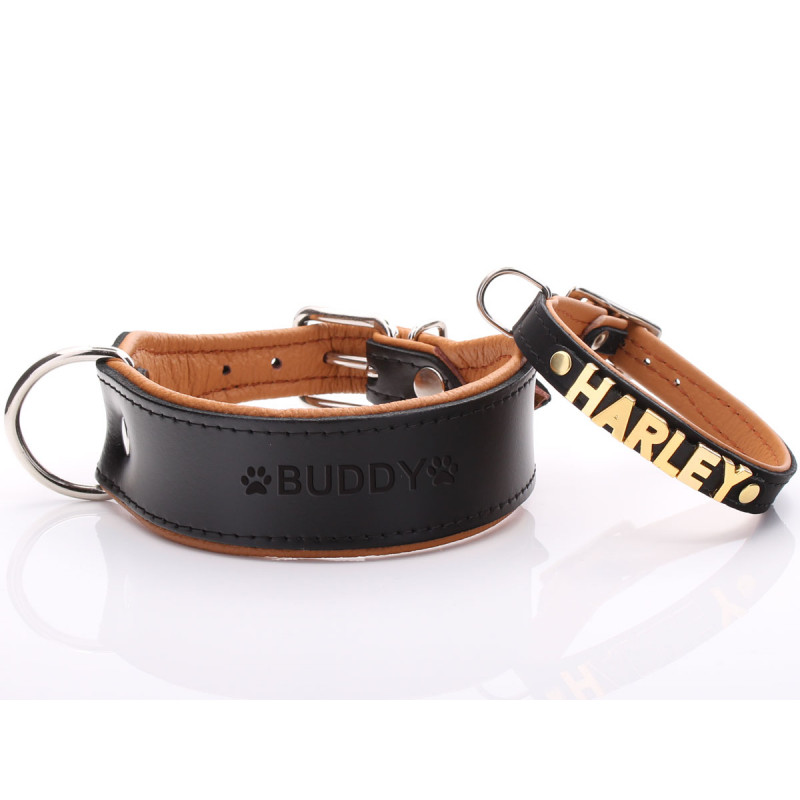 A usted y a su perro les encantará este collar para perros personalizado porque tiene más opciones personalizadas que cualquier otro collar del mercado. Se puede personalizar con 4 tipos de dijes diferentes o con estampado tradicional. Su personalización puede incluir patas, coronas, corazones y más. ¡Seguro que encontrarás el ajuste perfecto porque disponemos de 9 tallas! Su taza de té Chihuahua y gran danés finalmente pueden tener collares a juego. Diga adiós al frotamiento incómodo porque nuestros collares tienen una capa acolchada suave que se coloca entre la correa de cuero y el cuello de su cachorro. Las correas de cuero y las capas acolchadas están diseñadas en diferentes combinaciones de colores para hacer que nuestros cuellos sean posiblemente los más de moda en la red. ¡En total, tenemos 18 combinaciones de colores diferentes para elegir! Un anillo en D soldado, un forro acolchado suave con hebilla de metal resistente, hace que estos collares sean más que un simple accesorio de moda. Los paseos por el parque serán un placer y seguramente su perro recibirá más que unas miradas envidiosas de otros perros en el parque.