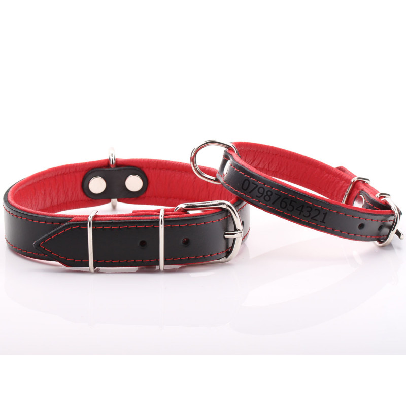 Este es un maravilloso collar de cuero para perros debido a la construcción robusta, el diseño simple y atemporal y la paleta de colores. La capa acolchada suave entre la correa de cuero y el cuello asegura que su perro no se queje del roce del collar incluso después de varios intentos de lanzarse después de invadir ardillas. El anillo en D soldado es muy fuerte y se adapta a todas las correas para perros estándar. La hebilla cromada duradera sujeta la correa firmemente y asegurará a cualquier perro durante toda su vida. No hay dos perros iguales, por lo que ofrecemos esta gama de collares en 11 variaciones de tamaño. Seguro que encontrará un collar que sea adecuado para el tamaño y el ancho del cuello. Asegúrese de consultar nuestra tabla de tallas para conocer todos los detalles. Ofrecemos grabado opcional como personalización. Puede personalizar el collar con su número de teléfono o el nombre de su perro.