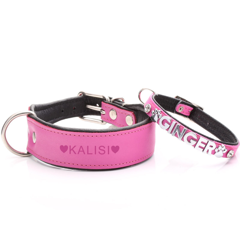 Collar De Perro De Cuero Rosa Hecho A Mano