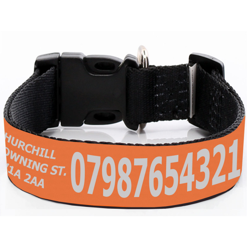 Collar De Perro Naranja Ajustable Ancho Con Estampado