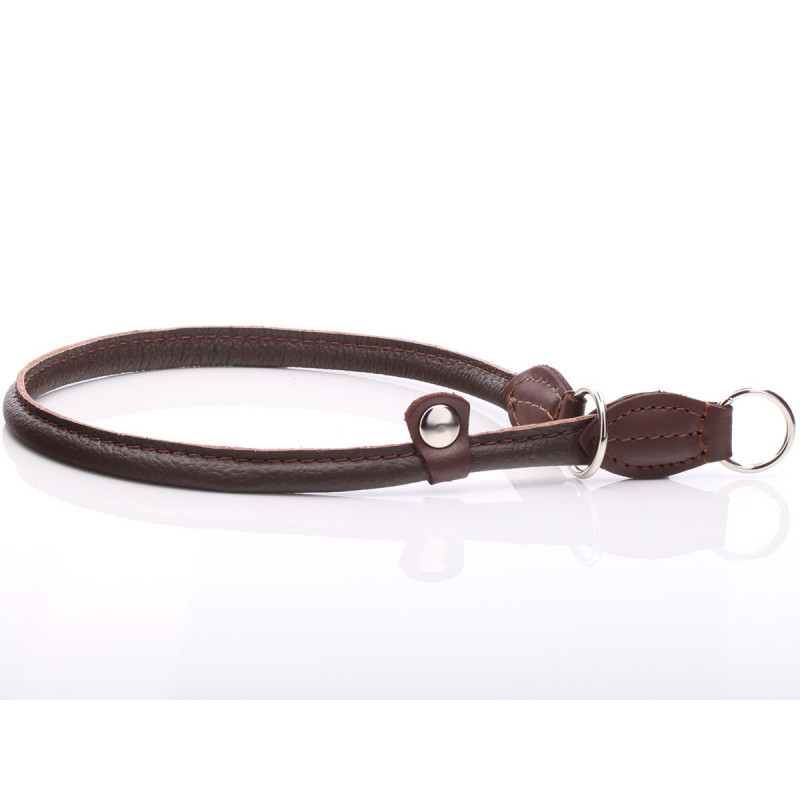 Los collares antideslizantes son maravillosas ayudas para el adiestramiento de perros que tienen problemas para tirar o que necesitan un poco de entrenamiento para caminar correctamente con una correa. Nuestros cuellos deslizantes redondos están hechos de cuero suave e incluyen un bloqueador de seguridad ajustable. Se agrega un núcleo de cuerda de nailon para ayudar a mantener la forma redonda y agregar durabilidad al tiempo que mantiene el collar liviano. El diseño redondeado también es bueno para cachorros con pelo largo o desgreñado porque evita que el pelaje se enrede. Cuando entrene a su perro, le recomendamos que tire de la correa hacia los lados en lugar de hacia atrás. Esto hace que su perro pierda el equilibrio y le recuerde quién tiene el control. Ajuste el bloqueador de seguridad para evitar que el collar se apriete demasiado.