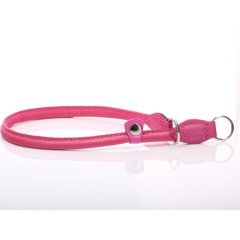 Los collares antideslizantes son maravillosas ayudas para el adiestramiento de perros que tienen problemas para tirar o que necesitan un poco de entrenamiento para caminar correctamente con una correa. Nuestros cuellos deslizantes redondos están hechos de cuero suave e incluyen un bloqueador de seguridad ajustable. Se agrega un núcleo de cuerda de nailon para ayudar a mantener la forma redonda y agregar durabilidad al tiempo que mantiene el collar liviano. El diseño redondeado también es bueno para cachorros con pelo largo o desgreñado porque evita que el pelaje se enrede. Cuando entrene a su perro, le recomendamos que tire de la correa hacia los lados en lugar de hacia atrás. Esto hace que su perro pierda el equilibrio y le recuerde quién tiene el control. Ajuste el bloqueador de seguridad para evitar que el collar se apriete demasiado.