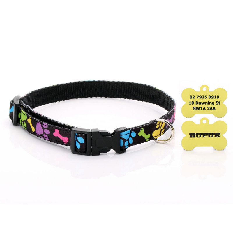 Collar Para Perro Con Estampado De Patas Y Huesos Con Etiqueta A Juego