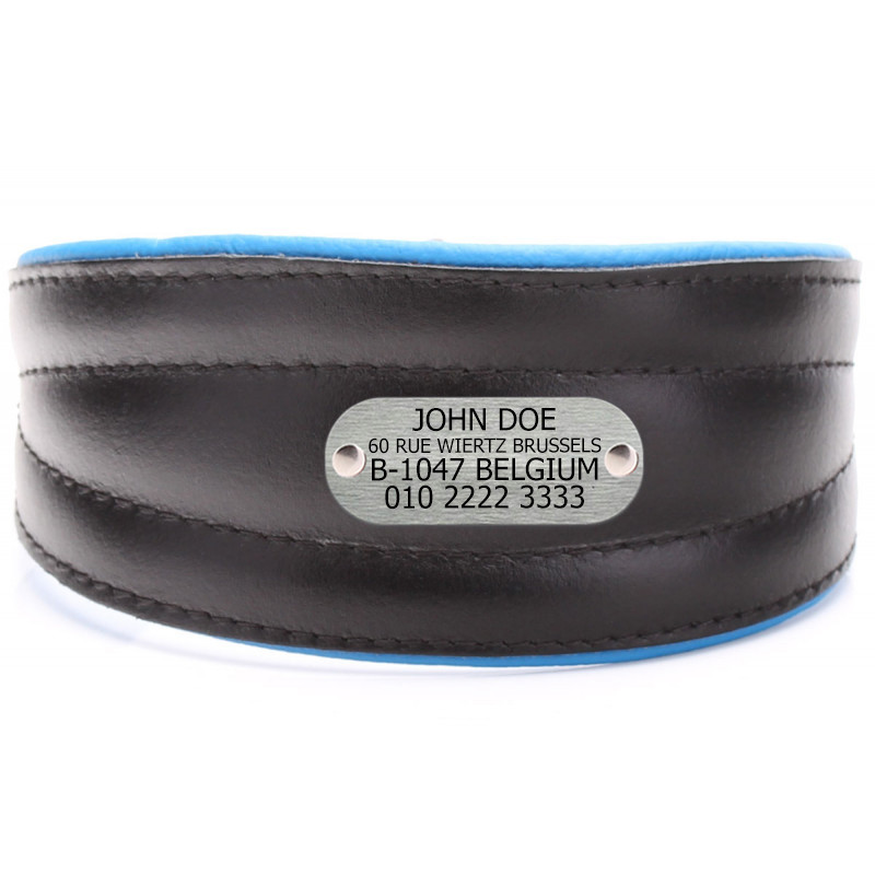 Hemos tomado nuestros collares de perro acolchados de cuero de alta calidad y hemos agregado personalización con una placa de metal impresa. Su perro apreciará el collar acolchado suave, mientras que usted se preocupará un poco menos sabiendo que la etiqueta no se caerá mientras persigue a los zorros por el parque. Especialmente diseñado para la comodidad de su perro de caza. El cierre estrecho se ajusta fácilmente debajo de la barbilla y el cuello se ensancha en la parte posterior del cuello para mantenerse sin causar rozaduras. Este diseño es útil para evitar que su perro se salga del collar en caso de que un conejo se atreva a cruzarse en su camino. El suave forro acolchado hipoalergénico significa que no tendrá líneas de cuello talladas en su piel y el frente de cuero real es duradero y elegante. Ofrecemos una multitud de combinaciones de colores de forro acolchado y cuero frontal para garantizar que su perro se sienta cómodo y elegante. El anillo en D soldado es muy fuerte y se adapta a todas las correas para perros estándar. La hebilla cromada duradera sujeta la correa firmemente y asegurará a cualquier perro durante toda su vida.